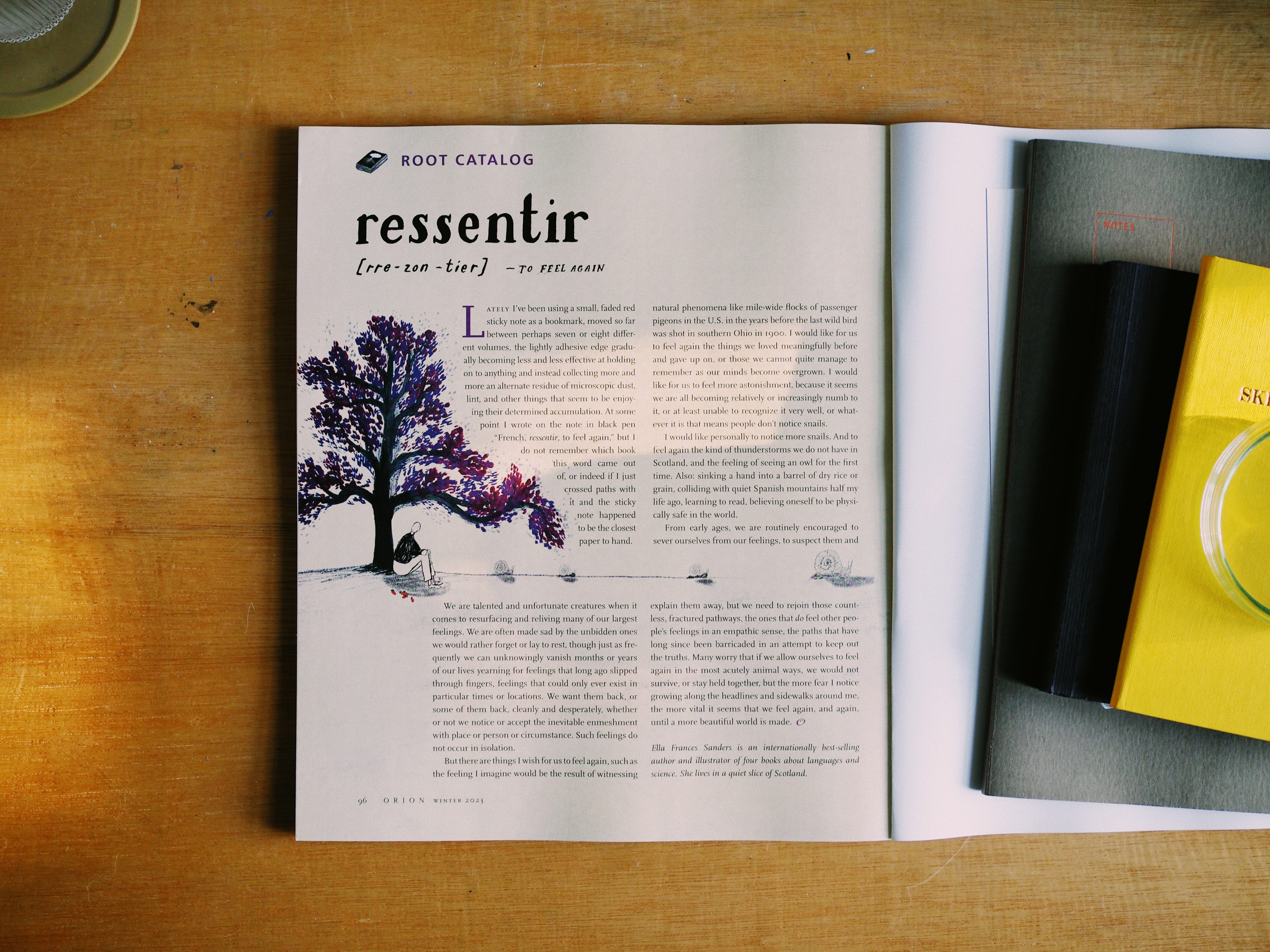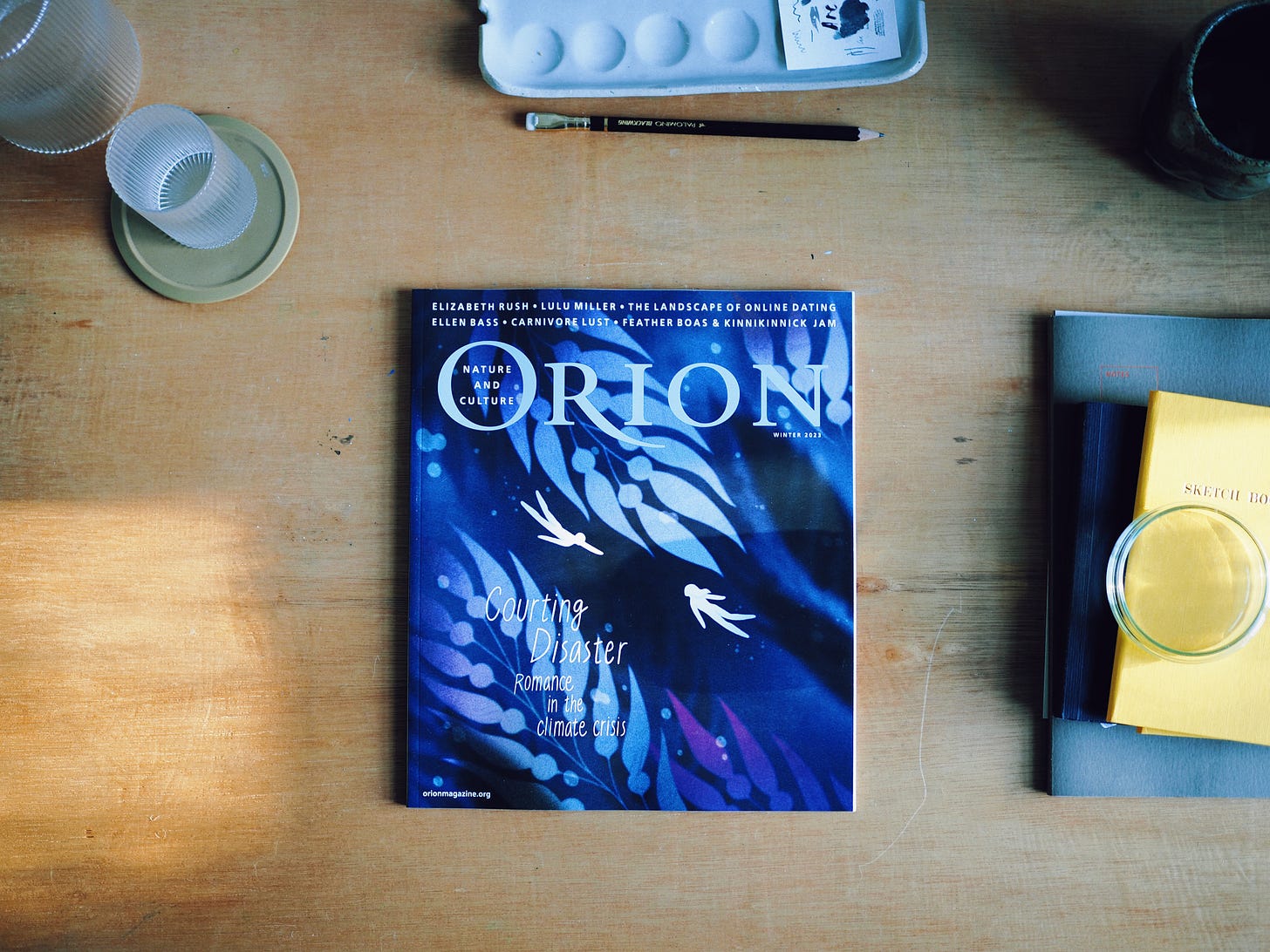 The winter issue of Orion Magazine arrived, and although I personally feel such publications are best held and loved on paper, there are several pieces from the issue available to read online. Below you can read the first paragraphs of my Root Catalog column, and perhaps, if you have very good eyes, read in its entirety from the photograph: