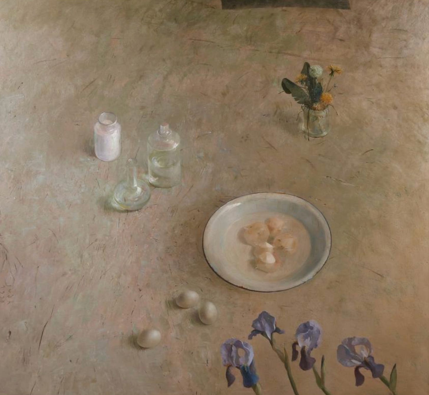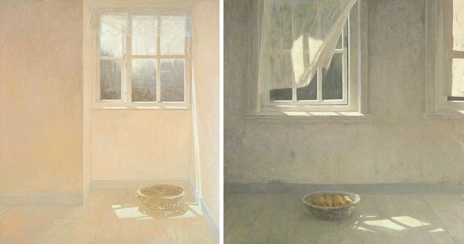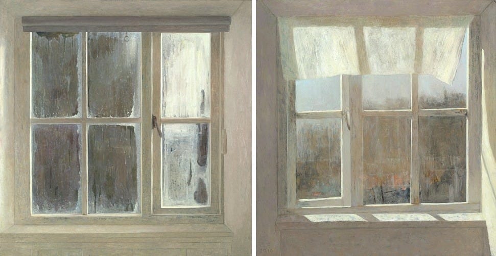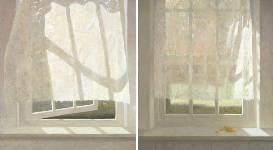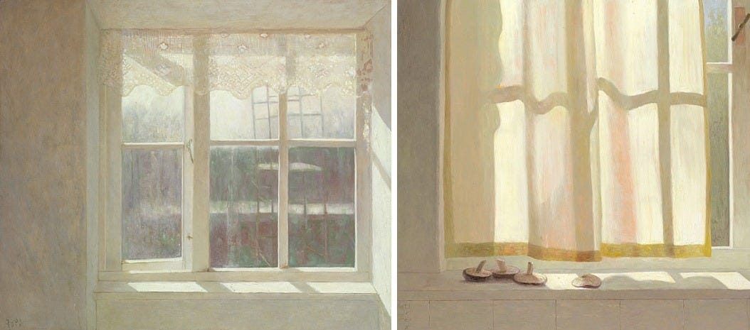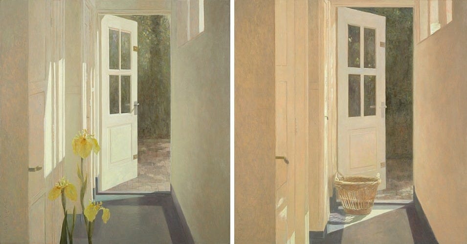 The windows, doors, and still lives of painter Jan van der Kooi (b.1957)—the light in these of course, good, a type of light I’m currently sitting in having scuttled to work in a room on the southwest side of the house, the one that gets lit up during the latter part of an afternoon, an early evening.