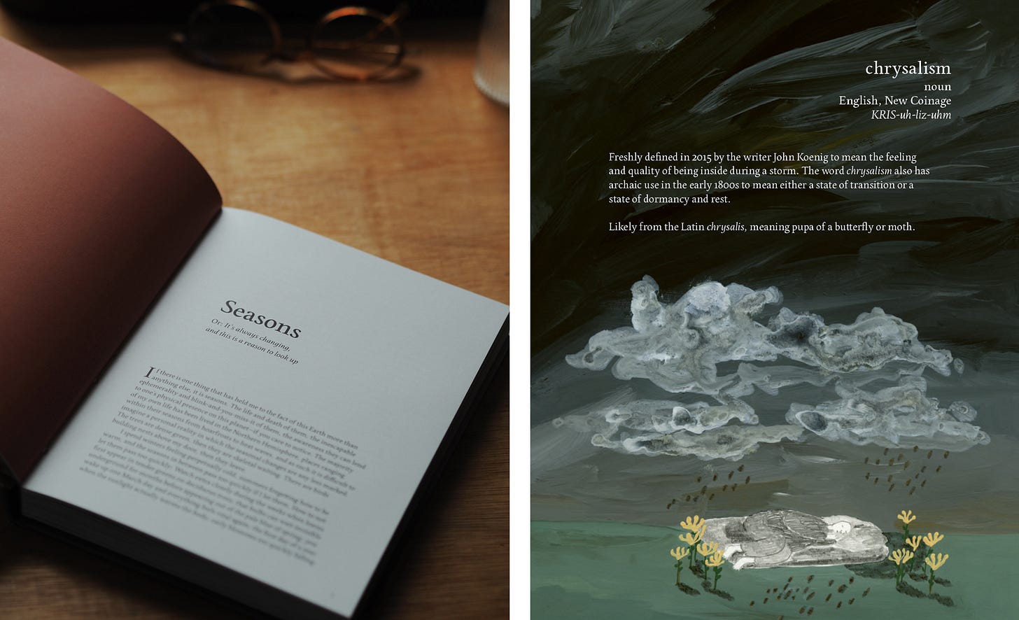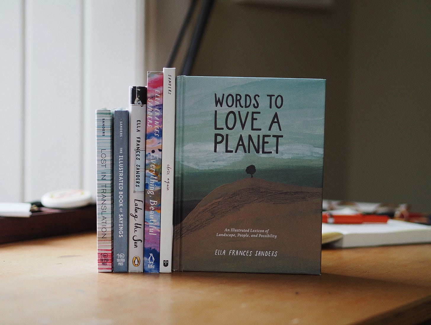 These six books span a dozen year’s of ideas and paint and panic, and in some ways it feels as though I’ve circled back—inefficiently but necessarily—to what felt most pressing at the very beginning of it all: the questions asked by language, and the language contained within landscapes. I talk about this circling in the book’s introduction. But while Lost in Translation does have some landscapes in its pages, some talk of trees and water, Words to Love a Planet is much more deeply and more determindly about our natural world—our one and only. It is more deeply and determinedly about all of it, so there needed to be a great many more words and meanings inside and approximately 200 paintings, the weight of which contrasts with a singular tree on the front cover. A singular person standing beneath its branches, representing admittedly a mess of things, but mainly hope, and the power contained within every single individual to both protect and grow.